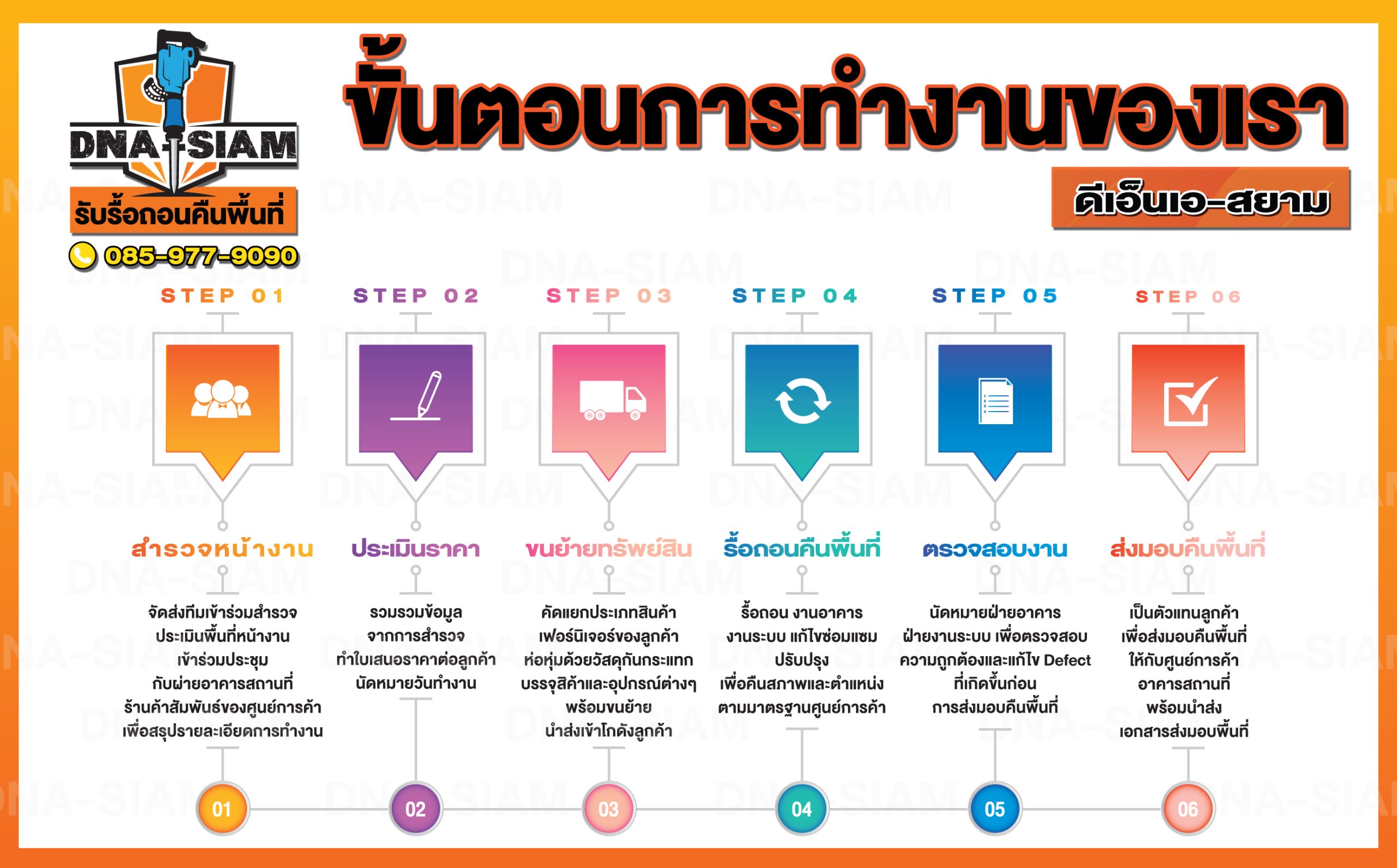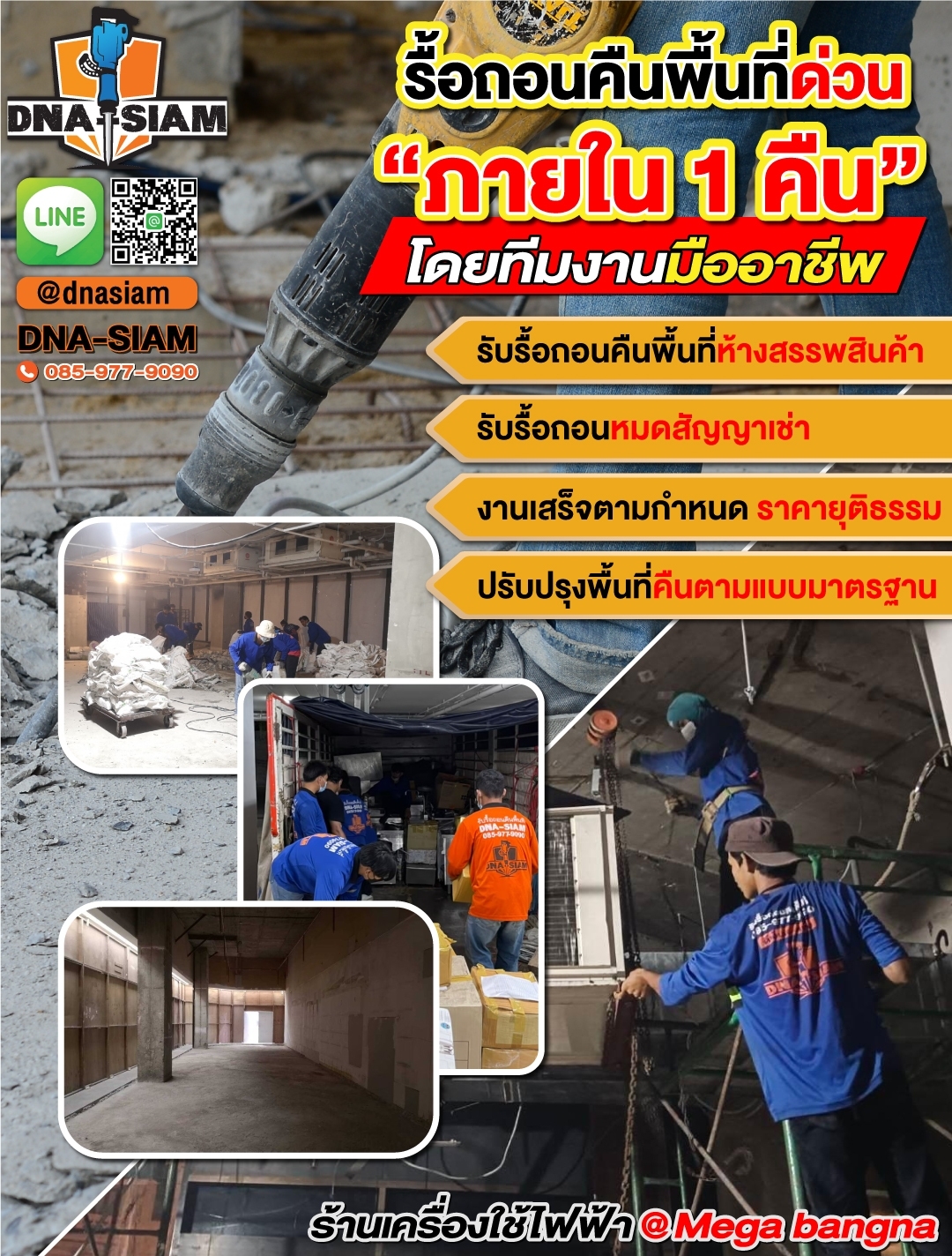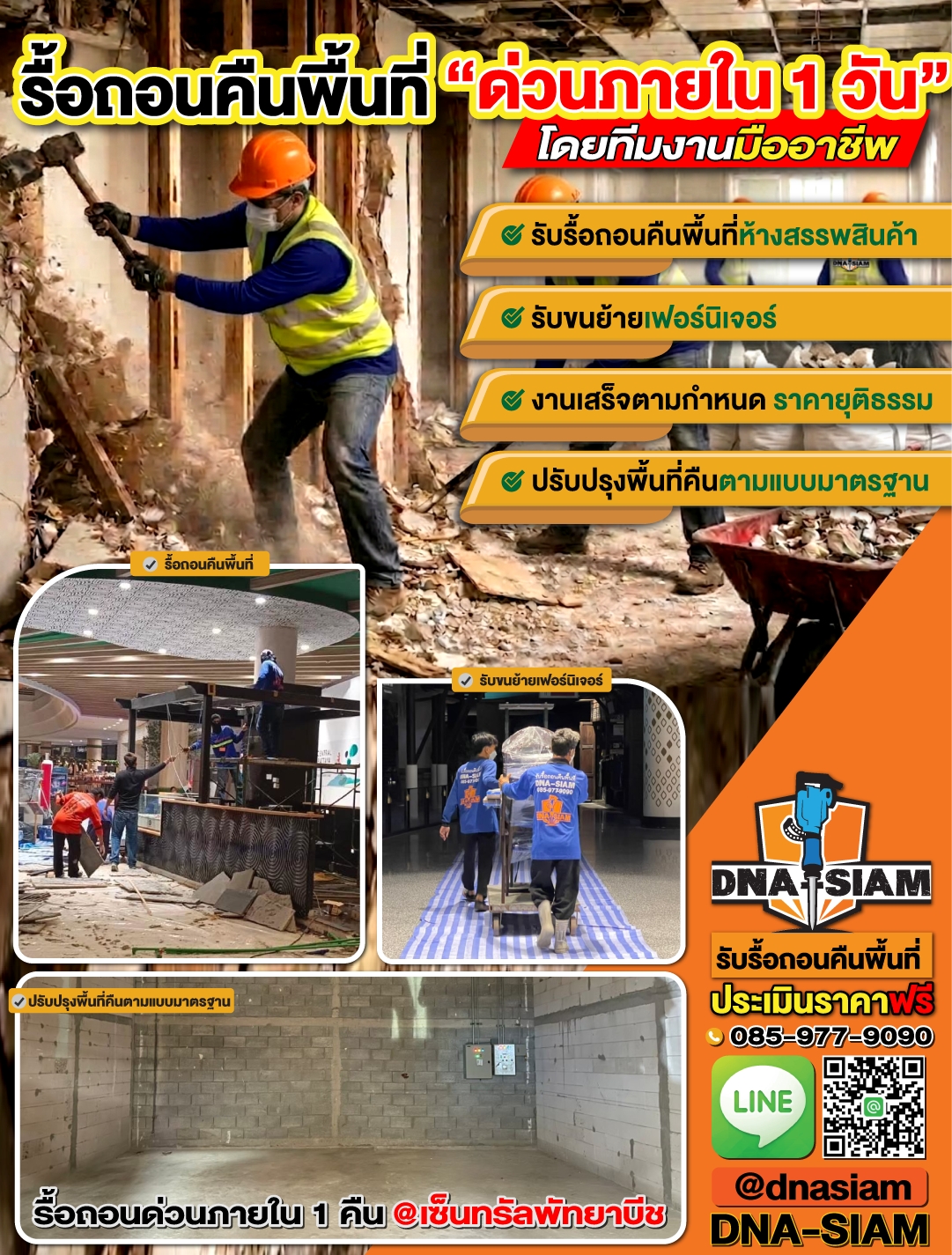 DNA-SIAM ดีเอ็นเอ-สยาม พร้อมให้คำปรึกษา สำรวจหน้างาน และประเมินราคาเบื้องต้น เพื่อช่วยให้การรื้อถอนและคืนพื้นที่ของคุณเป็นเรื่องง่ายขึ้น